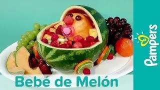 - Para la boca del bebé, corta un triángulo en el melón y allí, introduce el chupete que lo hará ver aún más tierno.