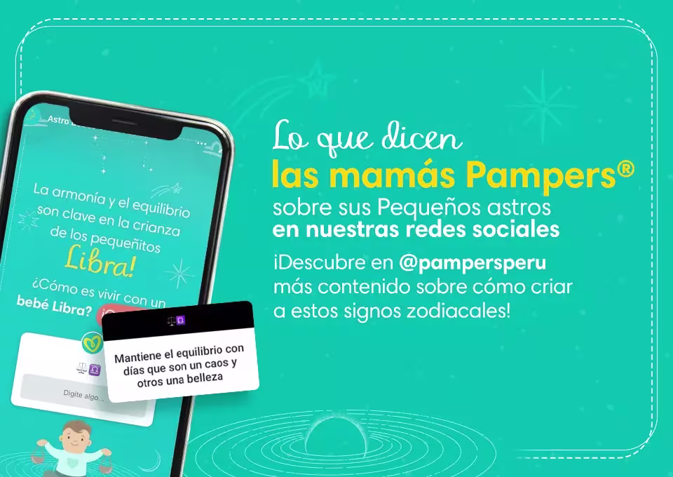 Si tu bebé es Libra, es posible que sea un pequeñito equilibrado y sociable, por lo que puede sentirse cómodo y seguro con los pañales Pampers® Premium Care™ Recién Nacido, que se estiran y adaptan fácilmente a los movimientos de tu bebé.