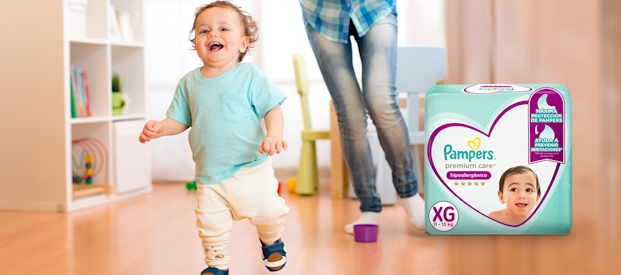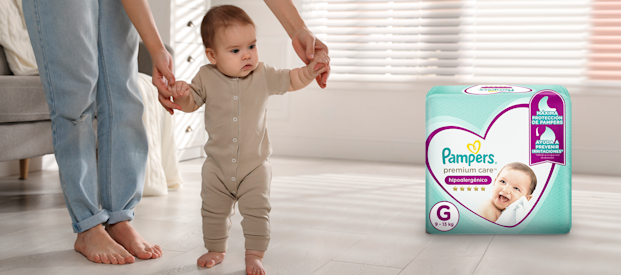 Tu bebé está creciendo y sus necesidades van cambiando. Consiéntelo y protégelo con la máxima suavidad y comodidad de los pañales Pampers®.