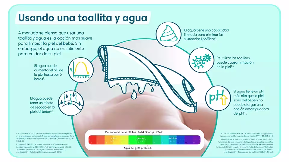Para tener una buena limpieza en la zona del pañal hacer uso de las toallitas para bebés ya que ayudan a que el pH se reestablezca y son amigas de evitar alguna alteración en el pH natural. Dicho esto, hay toallitas que dan paso a la dermatitis del pañal alterando su pH.